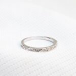 The Gyary Élan Diamond Band embodies modern femininity through clean geometry and delicate brilliance. Crafted in luminous white gold, this slim band features an intricate chevron-inspired design accented with precisely set micro diamonds that catch the light from every angle.