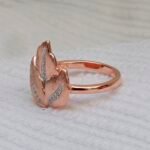 The Gyary Serene Leaf Ring captures the beauty of organic form in a refined, modern silhouette. Featuring a layered leaf motif, this design blends softly textured rose gold with delicate pavé-set stones that shimmer like morning dew.